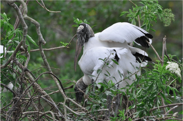 Great day in the breeding marsh! It was mostly overcast but I counted around 50 Great Egrets lying on nests! There are still some who are displaying and nest building but there are probably a dozen or more nests with chicks. The Snowy Egrets, with their red ceres and orange feet, are more common and are displaying in their breeding plumage. I saw 25 Wood Storks and 4 were lying on nests. I first saw the Storks lying on nests on January 27th. The incubation period is 28-32 days so we should have chicks fairly soon. The Anhingas are starting to display by shuffling their wings side-to-side and holding their tails and heads up. Some may be on potential nest sites. Still no Little Blue’s, Tri-colors or Cattle Egrets anywhere to be found. The Great Blue Herons are hanging out and I didn’t see any Cormorants gathering nest materials. We will hopefully have more baby Cormorants coming soon.